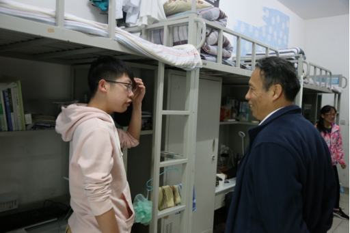 2019年4月29日,我院领导班子成员携辅导员进到我院18级男生宿舍怀仁斋查看安全、卫生状况,与学生亲切交谈,深入了解地测学子生活、学习状况,于此,拉开“地测安全教育周”序幕。