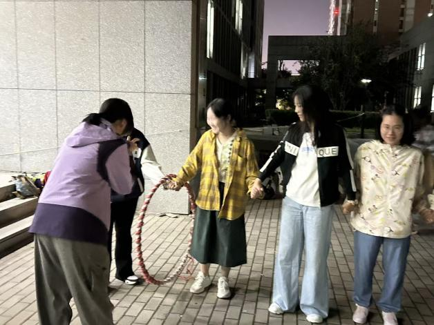 活动伊始,主持人介绍了本次团辅的目的、目标及活动安排。首先通过“呼啦圈”传递游戏让同学们分成两队,齐心协力,为了团队的荣誉而奋力拼搏。在游戏的过程中,大家感受到了团结的力量,也增进了彼此之间的友谊。
