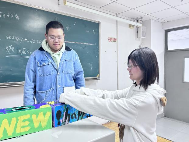 活动现场,同学们将学业压力、生活适应等忧虑或心愿写在纸上,匿名投入“解忧树洞”。全部投递完毕后,同学们随机抽取他人纸条,以陌生人视角写下温暖鼓励与情绪疏导建议,让“树洞”化身传递善意的“漂流瓶”。
