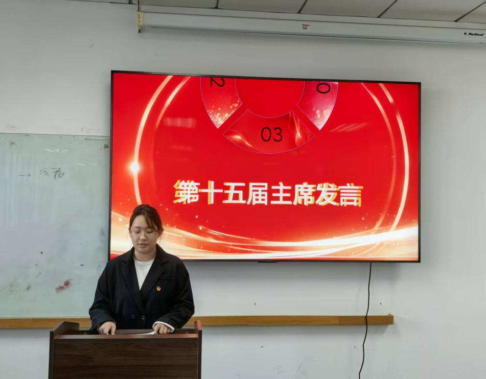 第十五届学生会主席陈奕好围绕“责任、服务、成长”三大关键词,阐述了未来的工作规划,立志带领团队以更饱满的热情、更务实的作风开展工作,为同学们打造更具温度与活力的校园生活。