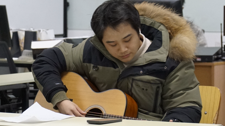 吉他弹唱为歌曲注入清澈质感,三位同学的和声默契交融,与吉他旋律完美呼应,让歌曲的情感层次更加饱满。