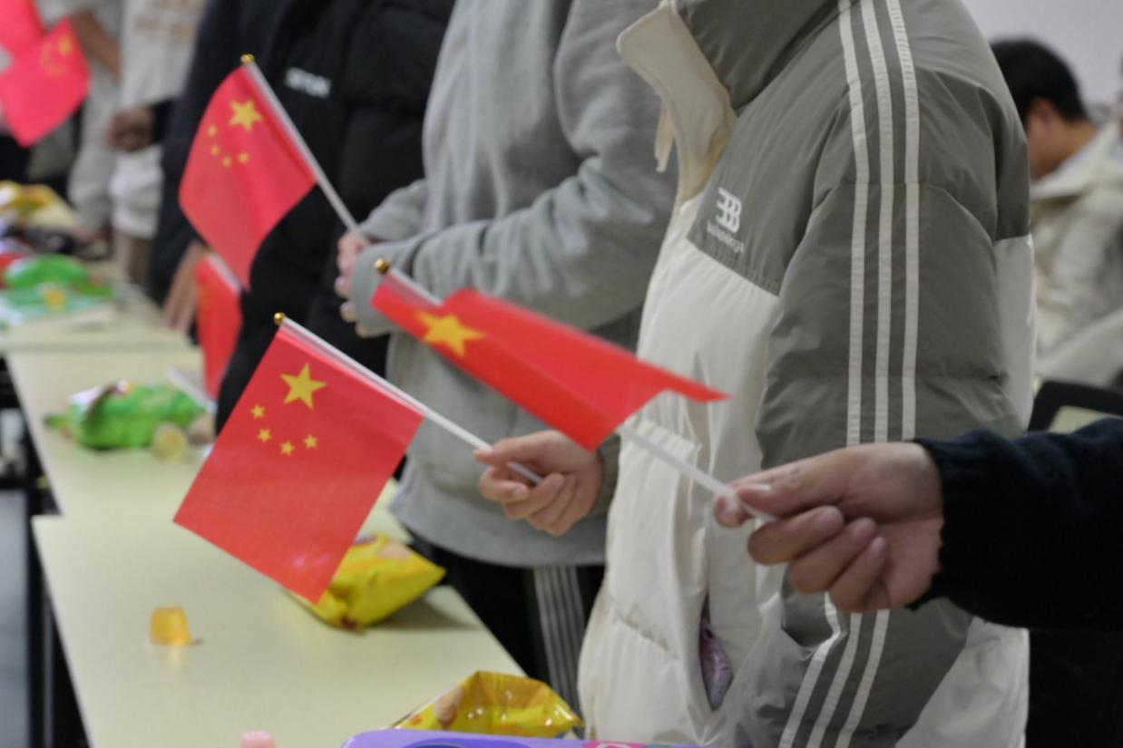 大家轻轻摇晃国旗,眼里闪着光,每一句都裹着“青春与家国相连”的热忱。
