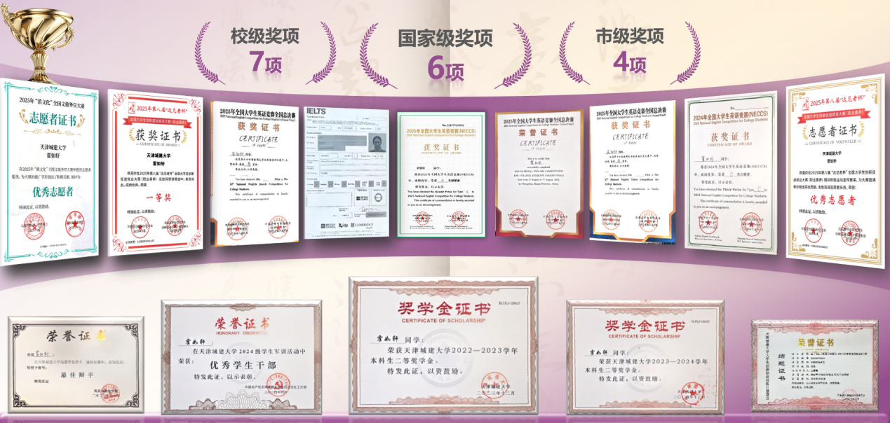 我的竞赛历程,是一部从探索到卓越的成长史。从大一的初试锋芒,到大二收获首个国家级三等奖的激励,再到两个月前与全国顶尖学子同台竞技,最终斩获“全国大学生英语竞赛特等奖”与“第八届全国大学生创新促进就业大赛一等奖”等多项国家级奖项——我深知,每一步攀登都作数,每一段经历皆成养分。更为重要的是,我通过竞赛与科研项目,在实战中自学掌握各种专业技能,还将这些专业能力成功应用于实践,在担任地图数据运营实习生期间,独立负责项目的空间分析工作,并协助开发数字管理平台,圆满完成了从理论认知到实践创新的跨越。